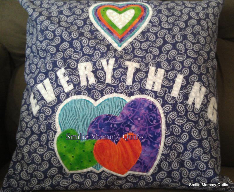 This pillow was bothering me, it just didn't feel complete. So it received a bit of a makeover. These hearts I made and appliqued would really be great for Valentine's Day as well. <3 :-)